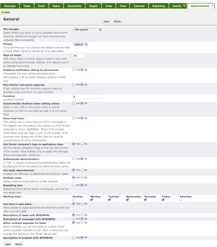 - File storage: Let's you choose between storing your documents in the file system or the database.
