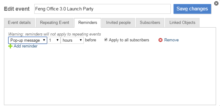 these reminders will be sent not only to the invited people but to all users who have subscribed to this event as well. You can define as many reminders for an event as you like.