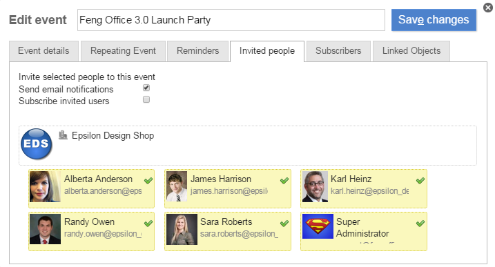 This section will let you invite users to this event through an automatically sent email notification and/or by subscribing them to this event.