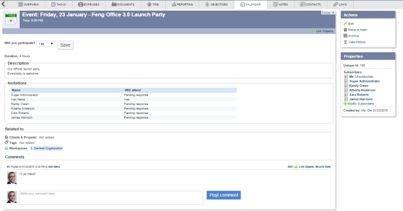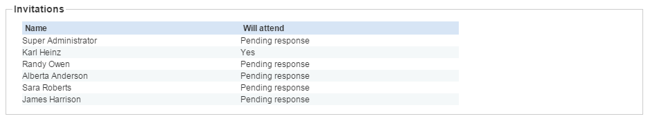 view. - Users who were invited have the possibility to declare whether they will attend or not in the detail view.