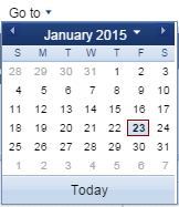 - Go to: This option will let you quickly jump to any date you choose. Please note the graphical representation of the current date (red border) and the date you choose (blue background). The