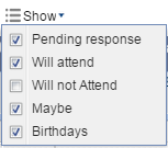 - Status: Filters events according to whether you are attending or not. For example, when you filter by