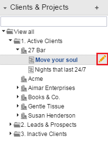 If you want to move a Project to a new or different client or folder, you can do so by: