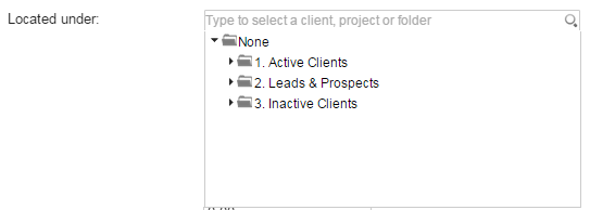 - On the 'Child of' tree, select the client or folder into which you want to organize this project
