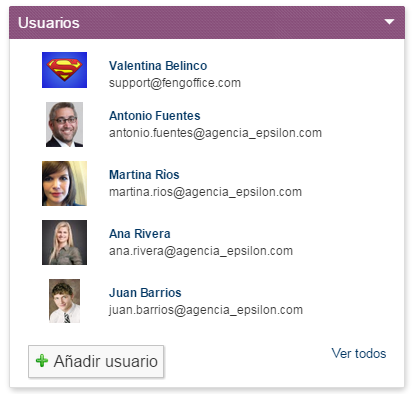 En este widget, podrá ver a algunas de las personas que han tenido actividad reciente en el proyecto, cliente, carpeta o área de trabajo en la que se encuentra.