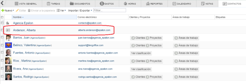 Para cada persona en EVX Software, contará al menos con la información de contacto.