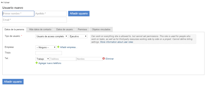 IMPORTANTE: Tenga en cuenta que, DESPUÉS de agregar el usuario, deberá otorgarle permisos antes de poder compartirle información o asignarle tareas.