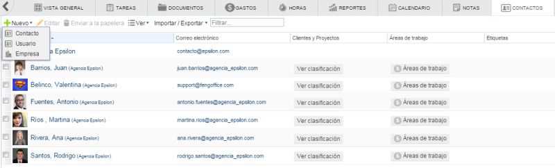 - Acceda al cliente, proyecto, carpeta, área de trabajo, etc. donde va a importar los contactos
