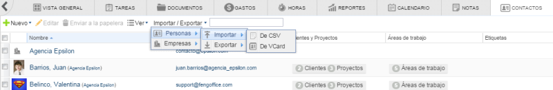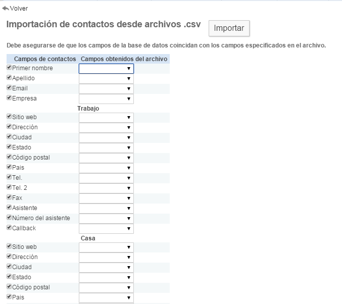Importar contactos desde un archivo .CSV o archivo VCard