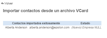 Importación de VCard