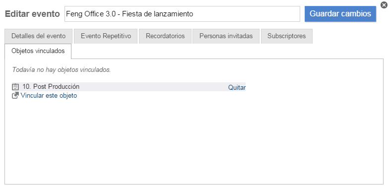 Esta sección le permite vincular objetos a un evento (y también desvincularlos).