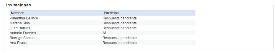 En la vista de detalles del evento, encontrará una lista donde puede ver quién ha sido invitado, quién participará y quién ha rechazado la invitación.