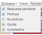 - Mostrar: Filtra eventos en función de la asistencia. Por ejemplo, cuando filtra por