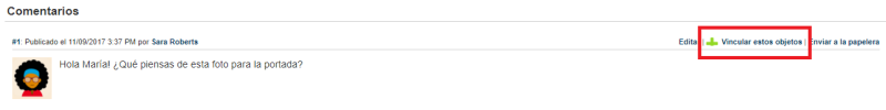 Vincular un comentario a otro objeto también es posible, siempre que usted sea el autor del comentario. Simplemente deberá hacer clic en Vincular estos objetos, tal como se muestra aquí: