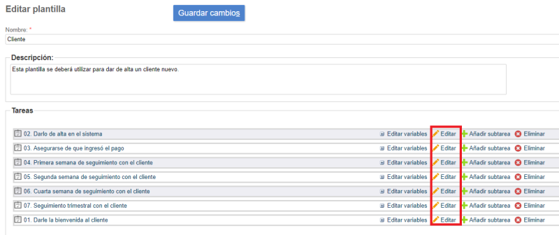 Para configurar esto, simplemente edite las tareas deseadas en el panel de configuración de plantillas, dirigiéndose a Configuración - Plantillas - Plantilla de tarea.