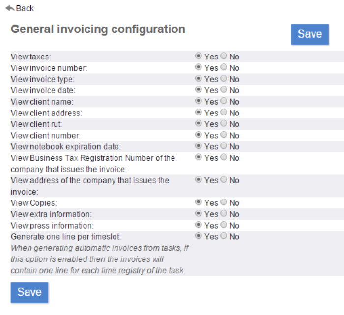 For all available invoicing options, see Invoicing modules Settings. Invoicing settings must be configured first; otherwise, the module will not work correctly.