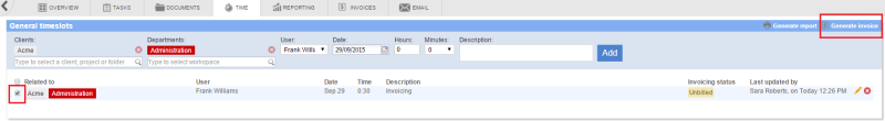 NOTE: To be able to generate invoices from timeslots, first ensure you have set up billing categories
