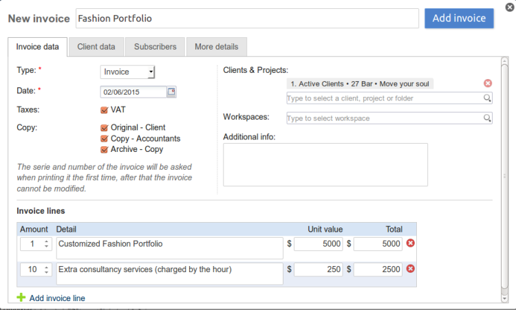 When printing invoices or other legal documents, one usually needs several copies: one for the client, one for our organization, and another one for the accountants.