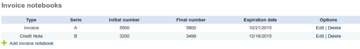 In order to do this, you will need to select one of the aforementioned notebooks, and once you do so, the series will be shown, and so will the number of the invoice.