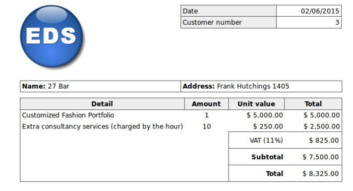 Important Note: At this moment, we only have one standard design for the structure of invoice printing, and this cannot be customized by the end-user yet. If you would like EVX Software to work on a custom design that fits the design of your organization's invoices, please contact your Account Executive for further information.
