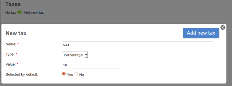 This means that whenever you create an invoice, as we will see later on, by default, the VAT of 10% will be selected, but of course, you can deselect it.
