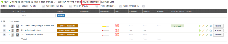 You also have the possibility of generating several invoices from several tasks with timeslots, by selecting them on the Tasks List and clicking on “Generate Invoice” on the toolbar.