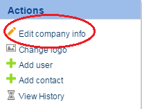 - Click on 'Edit company info' on the Actions menu on your right, as shown below: