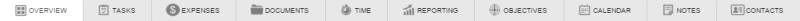 The tabs on top of the main area are the main navigation elements in EVX Software. Here, you choose the information type you want to work with. The labels on these tabs give you a good impression of what type of information you can expect.