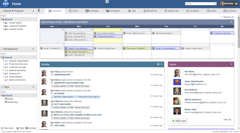 There is a special tab called “Overview”. Think of it as the starting point or homepage of your EVX Software installation. The overview offers you a selection of the most important, most urgent, or most recent information. You can call it a dashboard if you like.