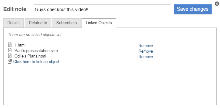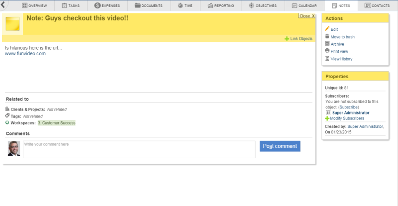 - Subscribers: People who are subscribed to this note. Clicking on a subscriber's name takes you to the corresponding user profile.