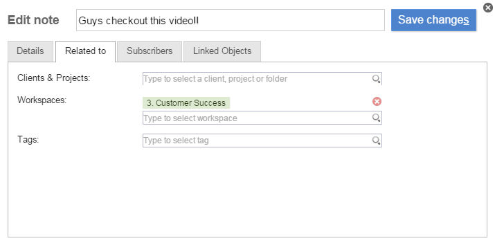 - Workspace: Workspace where this note is allocated. Clicking on a workspace name to select it takes you to the list view.