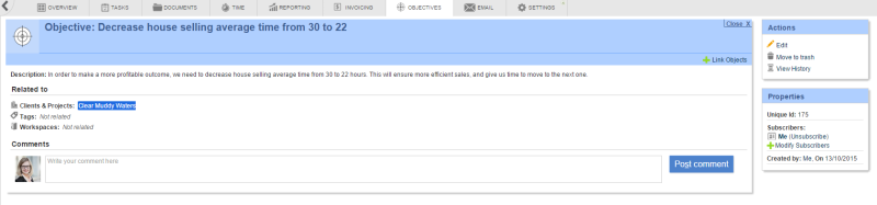 - Post comments, as reminders or notes of anything regarding the objective.