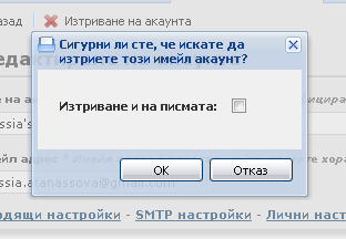 Ако желаете, можете по всяко време да изтриете някой от вече съществуващите си имейл акаунти. За тази цел, отворете формуляра с настройките на акаунта си и щракнете на бутона Изтриване на акаунта