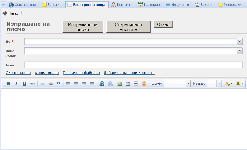 Изгледът за редактиране в модул Електронна поща