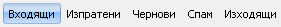 - Входящи: Показва входящата поща, т.е. изтеглените от имейл сървъра нови писма. Изтеглянето на писмата става след натискане на бутона