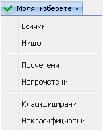 - Представлява друг начин писмата да се филтрират: По състояние: (прочетени, непрочетени), По класификация: (класифицирани, некласифицирани), По акаунт (всички едновременно или един по един).