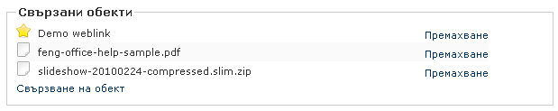 В изгледа за редактиране на обект присъства раздел, наречен Свързани обекти