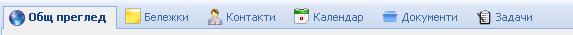 Бутоните от горната страна на основната площ на екрана са основния елемент за навигация във EVX Software. Оттук във всеки момент от време можете да изберете типа информация, с която искате да работите. Надписите на тези бутони дават добра представа какъв тип информация да очаквате да се покаже.