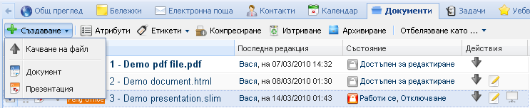 - връзка към онлайн наръчник (която ще се отвори в нов прозорец на браузъра),