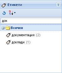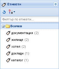 Забележете, че даден етикет ще се появи в този списък едва когато с него бъде отбелязан поне един обект. Съответно, етикетът ще изчезне от списъка в момента, в който престане да се използва дори и от един обект.