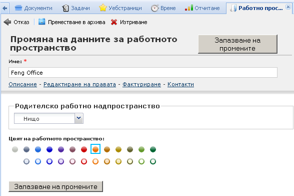 - Родителско работно пространство: Позволява изграждането на йерархии от работни пространства.