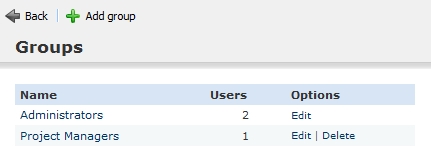 En el panel de administració puedes crear, editar y borrar grupos. No obstante, hay un grupo especial, llamado “administradores” por defecto, que no puede borrarse.