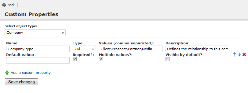 Las propiedades particulares son campos de datos adicionales que te permiten almacenar información específica de tus necesidades. En esta sección del panel de administración puedes definir tus propios campos particularizados. Más detalles en la página Propiedades particulares.
