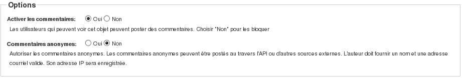 Dans cette section, vous pouvez définir quelques options liées aux commentaires. Voir les explications sur la figure pour plus de détails.