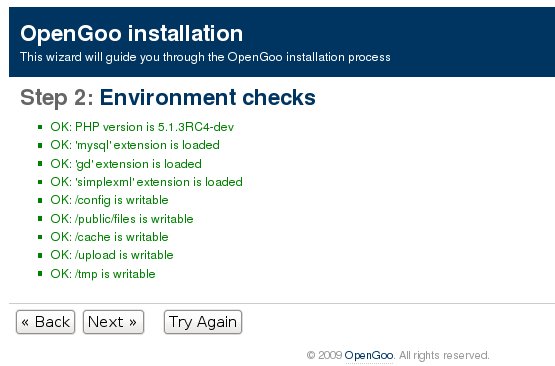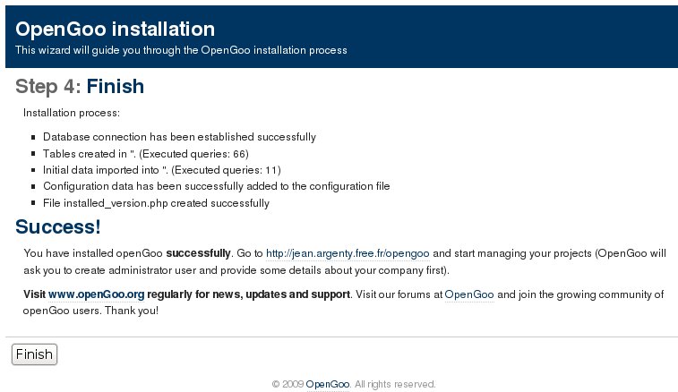 L'installeur est un guide qui teste votre système et paramètre votre installation d'OpenGoo en suivant une procédure en 4 Temps.