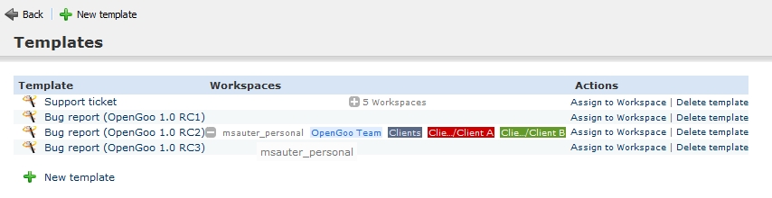 管理者の権限がある場合は、管理パネルでもタスクのテンプレートを管理できます:
