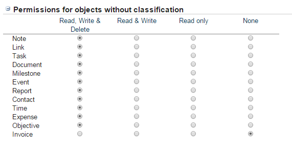 - Go to the 'Permissions for objects without classification' section and select the desired options.