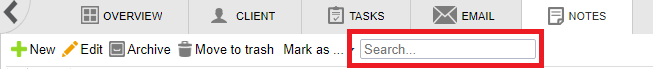 Examples of modules that include this search box are: E-mail, Notes, Documents, Contacts, Invoices, Tickets, and more.