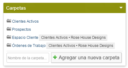 - Ingrese el nombre de la carpeta en el widget Carpetas.