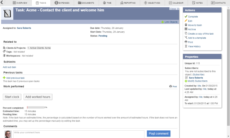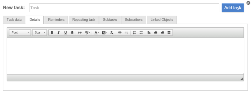 This section allows you to add Subscribers to these Tasks, which comes in very handy to follow and observe a certain process.